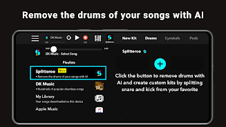 Withthenew Splitteroo integration,youcanhave an immersive drumming experience by taking outdrums from your favorite songs,makingyourowndrum kits with the separated snare and kick sounds, andplayingalong with themusic!