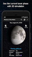 Usea3DsimulationbasedonNASAdatatoobservethecurrentlunar phase: You can evenwatchthe shadowsshift.Featuresalivelunarwallpaperand awidgetthatallowsyou toseethecurrentphasewithoutopeningtheapplication.